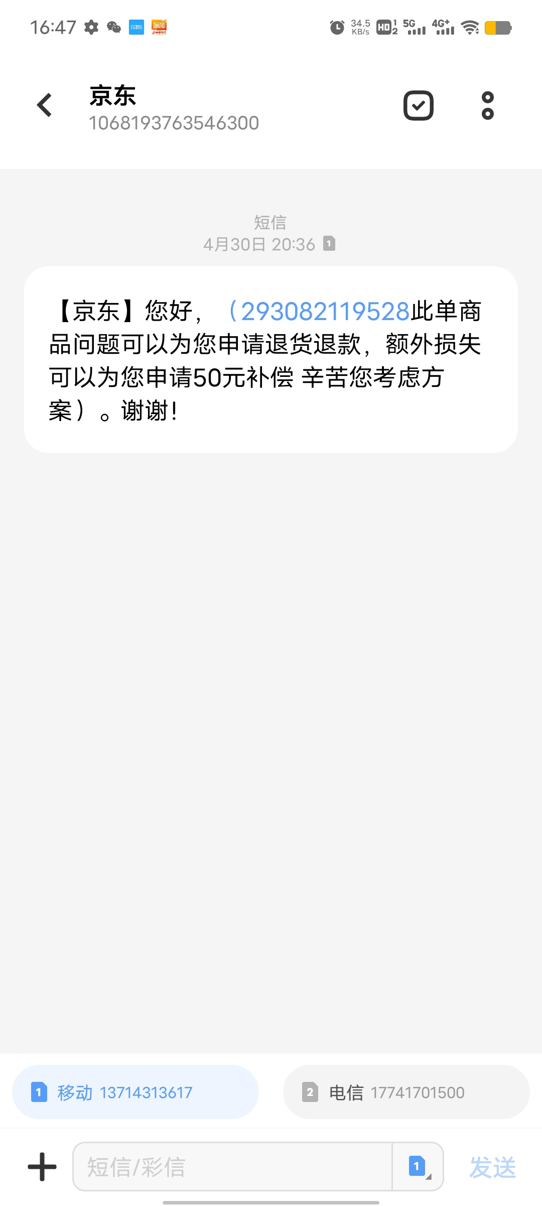 商家:您好,很抱歉给您添麻烦了,您反馈的问题小妹已为您反馈~如后期有疑问请联系京东客服电话:950618或联系在线客服(路径:京东APP—我的—客户服务—点击“在线客服”),感谢您对京东的支持,谢谢。