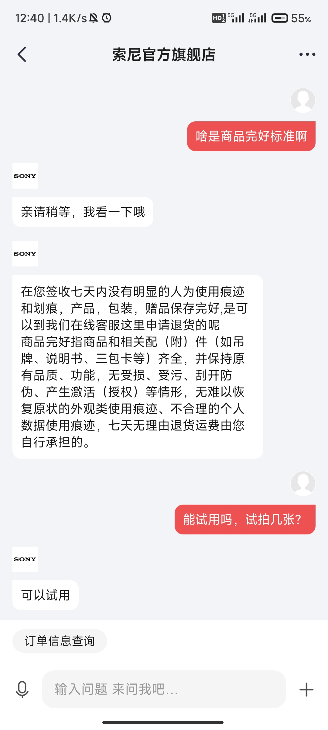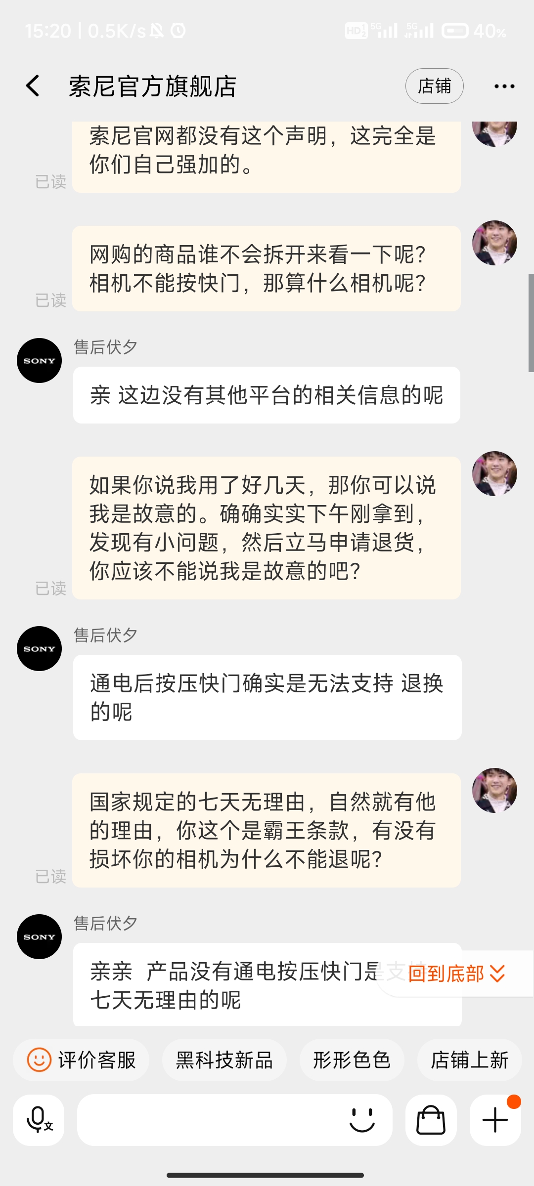 索尼官方旗舰店拒绝履行七天无理由退货,态度恶劣