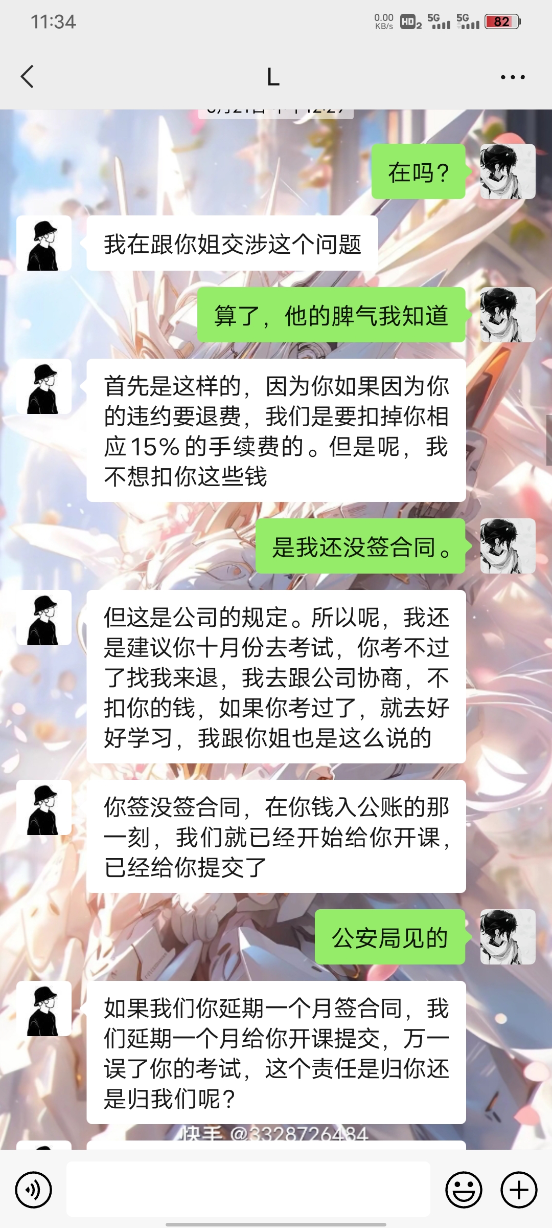 深圳市今学教育有限公司诱导报名,违 规收费,对方跟我宣传之后的 好处,以此诱导我付费报名,但是 后续我提出退费时对方却告知退费 要求扣除15%的费用,若参加10 月份的考试,没有可以全额退。这 一条款对方并未提前告知,该机 构违反了《消费者权益保护法》第 二十四条:“经营者不得以格式条 款作出排除或者限制消费者权利、 减轻或者免除经营者责任、加重消 费者责任等对消费者不公平、不合 理的规定的诉求内容是退赔费用, 将费用退还
