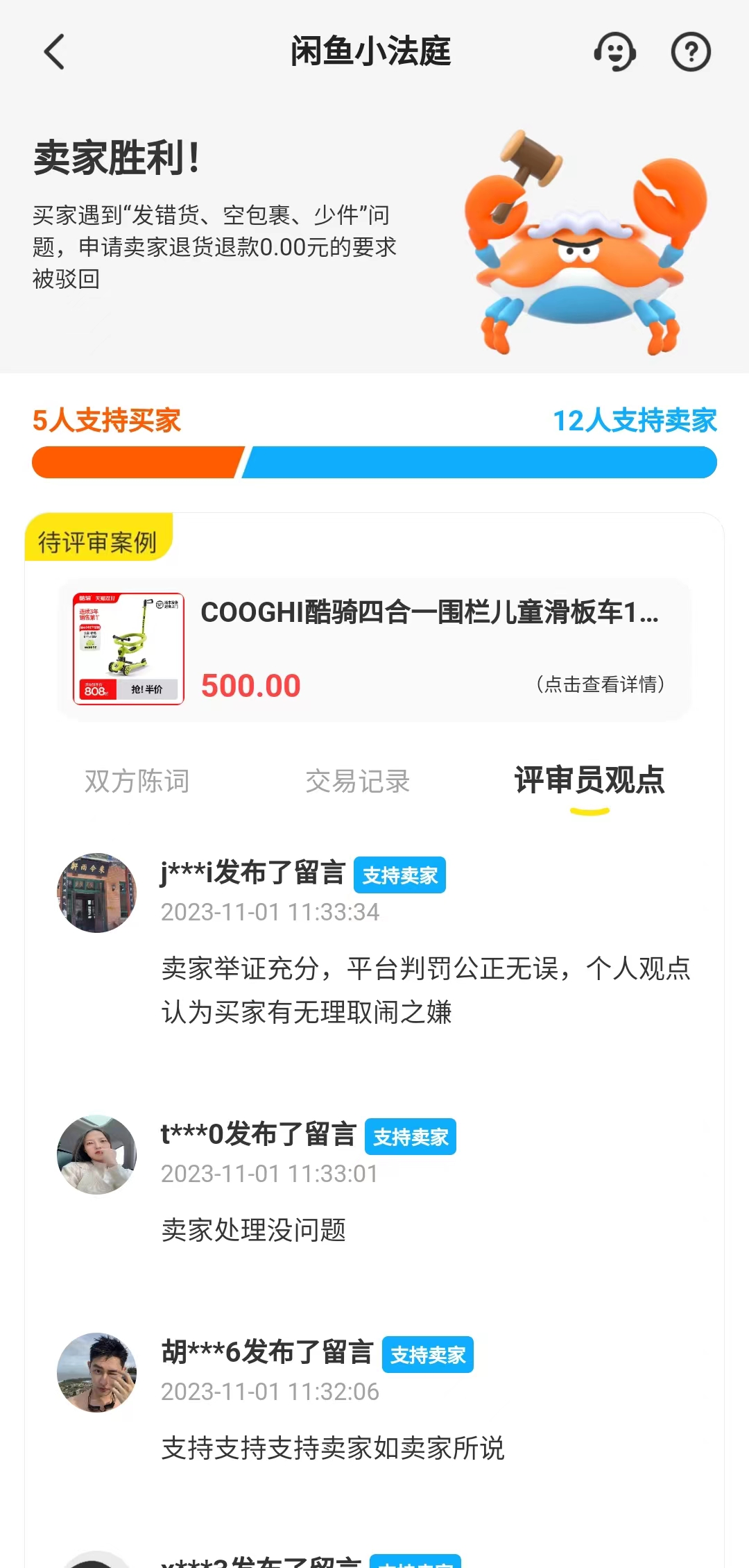 2023年10月26日在闲鱼平台512+30元购买商品。 收到货后发现 1.缺关键连接件,孩子无法骑行和推行,如果不是发现及时,孩子才1岁,直接飞奔会非常危险。 2.版本发错,见旗舰店图,差价200+ 卖家均已承认,但是提出的赔偿和补发迟迟没有操作,所以申请退货处理。 卖家拒绝退货,我申请闲鱼官方介入,官方直接甩手掌柜,让闲鱼用户评审。 导致本清晰明了的事情,因卖家发错和缺少零件而退货,变成了我的问题。 闲鱼官方客服说他们无权处理,所以申诉无门,且不是一次如此了。 所以网购清朗环境,需要我们维护,故而状告闲鱼官方平台。要求赔偿!